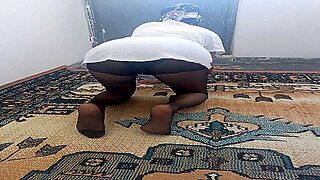 Horny mature carpet wiping black nylons