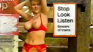 80s red lingerie silly outdoor dance -- big boobs and bush