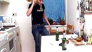 Slender German babe fucked in bathroom