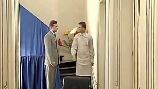 Blonde vintage beauty captivates with raw passion in sultry maid play