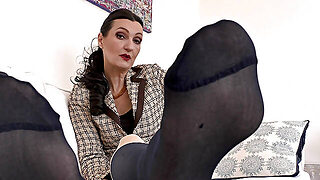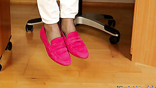 Pink Suede Loafers & Black Rht Nylons - Slow Footplay Under the Desk