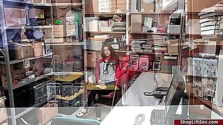 After she was caught shoplifting, sweet girl decided to offer her pussy to a security guy