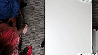 Big titted nanny was caught on tape while she was getting fucked, instead of doing her job